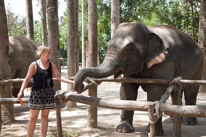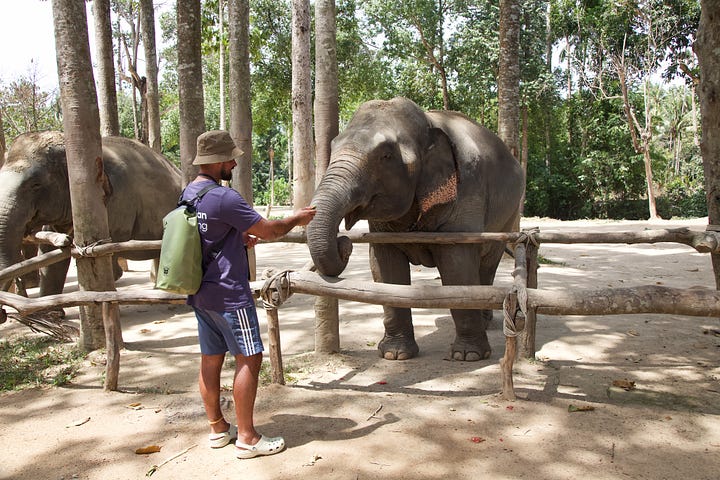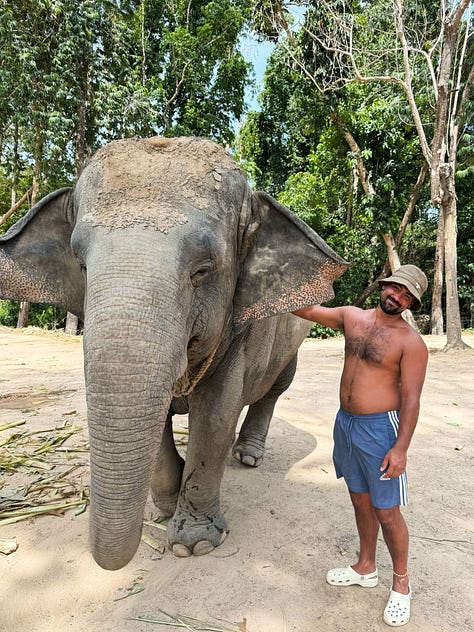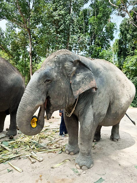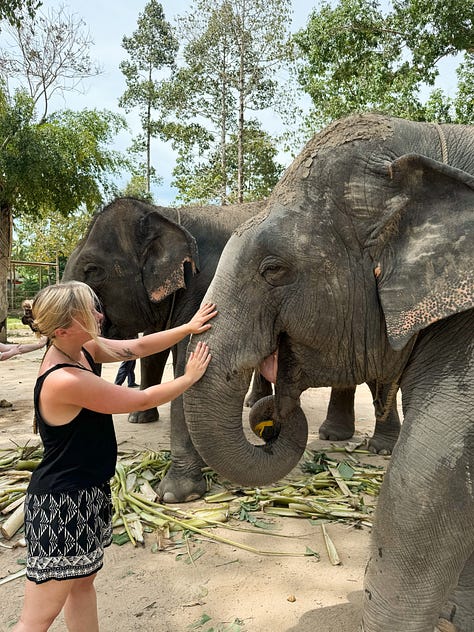 We did a half-day experience and got to feed the elephants watermelon and supplement balls (tamarind and probiotics for good digestion, the nutritionist in me was happy to see this!). We learnt how to do a physical examination by checking the health of the elephants’ eyes and skin, then we scrubbed them in a pool and gave them a mud bath to protect their skin from the sun. We learnt a lot about them too - they only sweat through their feet and you can measure their height looking at just their footprint! If you measure the circumference of their foot and multiply it by 2, you get their height…how cool is that!