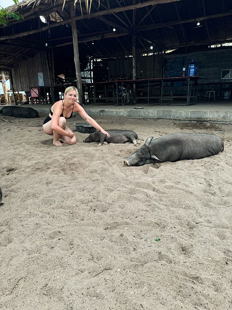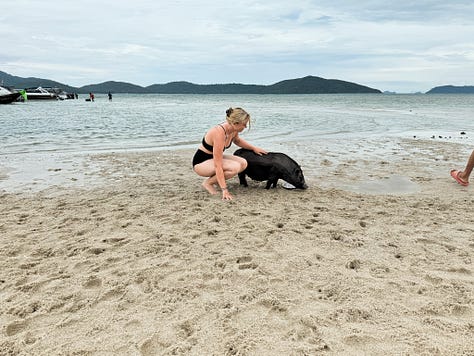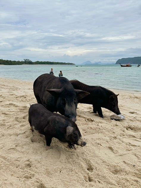 Whilst on this stunning island on the Gulf of Thailand we rented a scooter (terrifying and exciting in equal measures for me but Luke had the time of his life!) and went snorkelling on Coral Cove Beach. It wasn’t too clear but we saw some coral and fish! We also visited Pig Island (Koh Mudsum). I am very conscious of animal-based activities and feel it’s really important to put animal welfare first. However, after reading up on Pig Island (and there are many different opinions), the tourism is what keeps the pigs fed and watered. Whilst this is not ideal, the pigs appeared to be well-kept, content and quite happy for people to approach them and stroke them. They would often snap at each other if one pig was stealing food so they definitely had the ability to protest, but never did at tourists so I assumed they were okay with people being around them. After seeing this I really enjoyed being with the pigs and thought they were very cute! I’d love to hear any opinions on this as it’s really important to consider all aspects.
