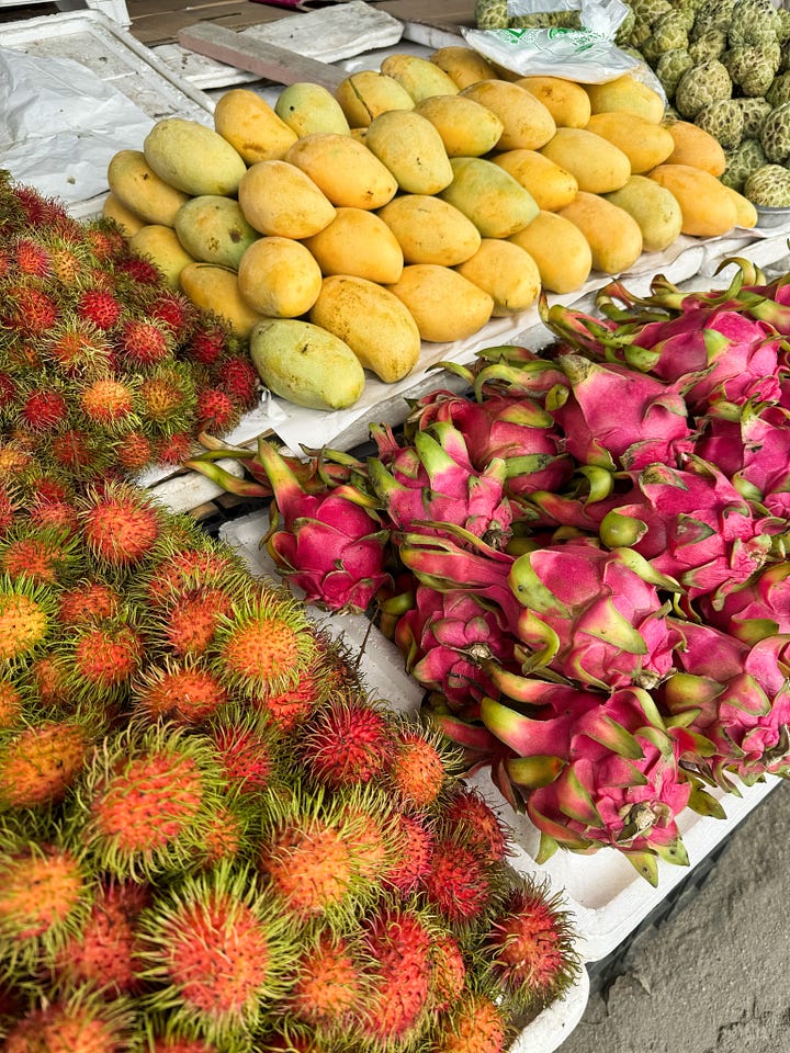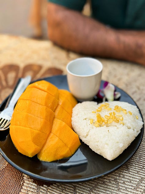 The food was delicious in Koh Samui and I had lots of vegetarian options. We ate mango sticky rice, spring rolls, cashew nut stir fry, fried rice, tofu with ginger and Thai basil and we drank coconut after coconut after coconut. 🥥 One afternoon we went on our own fruit tour and tried durian (awful with a capital A…IYKYK!), mangosteen (delish), lychee (lush), and rambutan (a less lush version of lychee). The fruit here is on a different level and I’m enjoying it every day!